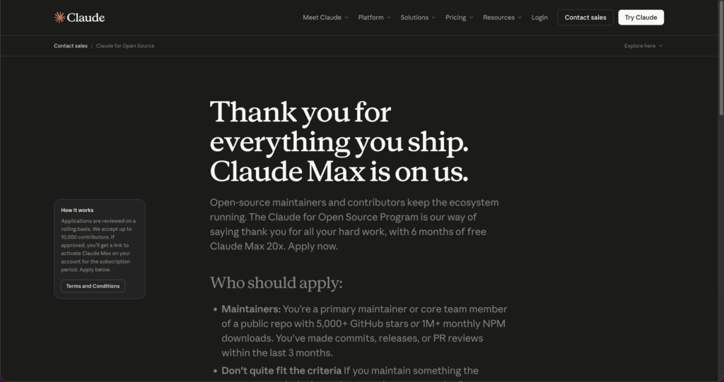 If you’re building, maintaining, or scaling anything in tech, this is not just another “free trial” gimmick. Anthropic is offering 6 months of Claude Max (20x usage), and for the right people, this is a serious leverage play.